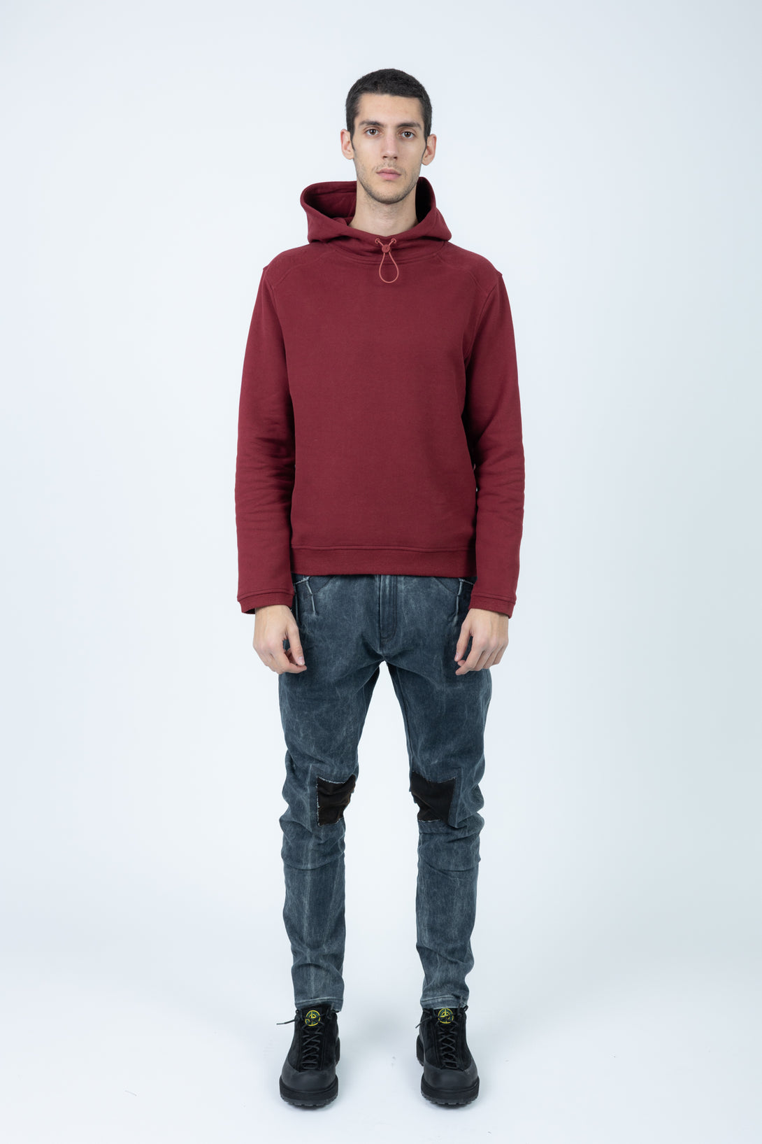 Red Men's Cotton Cashmere Hoodie with Adjustable Hood