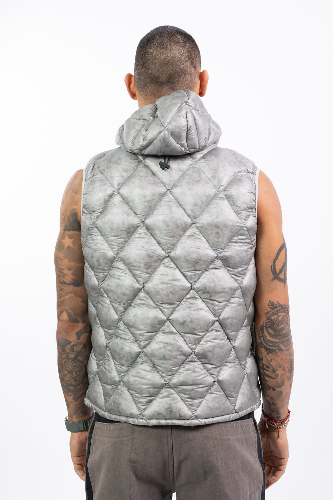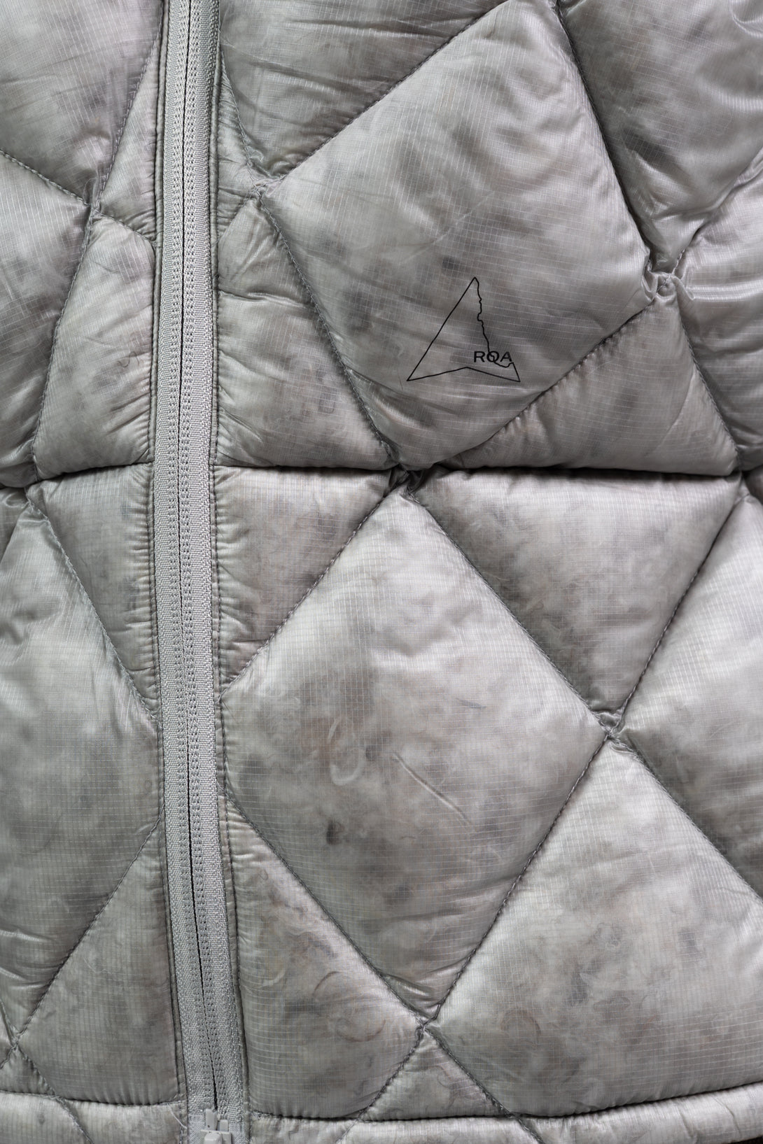 The 800 Fill Power Hooded Down Vest in silver color is crafted from durable 10D water-repellent ripstop nylon, offering exceptional protection against the elements. Filled with 800 fill power down, this vest provides superior warmth without the bulk. The roomy front pockets allow for easy access and convenient storage, while the elastic binding at the hood opening and armholes ensures a snug, comfortable fit. The adjustable body hem helps seal in warmth, and the adjustable hood adds versatility to changing weather conditions.