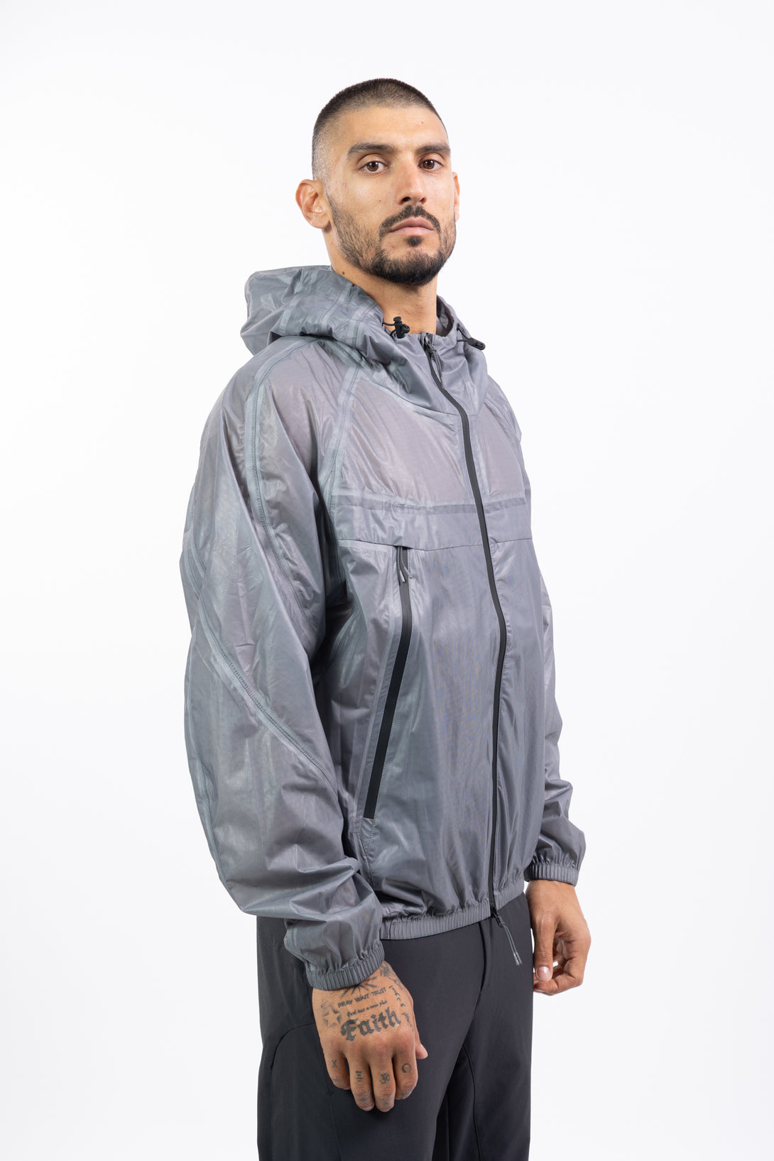 The Glasslike 3L taped waterproof jacket in dark grey color is made from extralight 3L fabric, offering a 10K water column rating for excellent waterproof performance while maintaining breathability. The innovative 3L fabric combines three layers—a durable outer shell, a waterproof membrane, and a soft inner layer—for superior comfort and durability. Taped seams enhance its resistance to water intrusion, ensuring full protection in wet conditions. The adjustable hood, elasticated body hem, and cuffs provide a secure fit, while roomy front pockets with zip closures add practicality. Packable into its own bag.