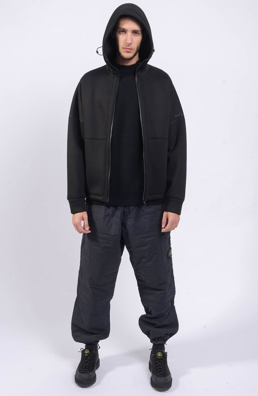 Elasticated drawcord in hood. Overlock seams. Standing welt hand pockets with hidden zip. Inlay under sleeves and down sides. Embroidery of Stone Island logo on left sleeve. Flat cuffs. Elasticated drawcord in bottom hem. Oversized fit.