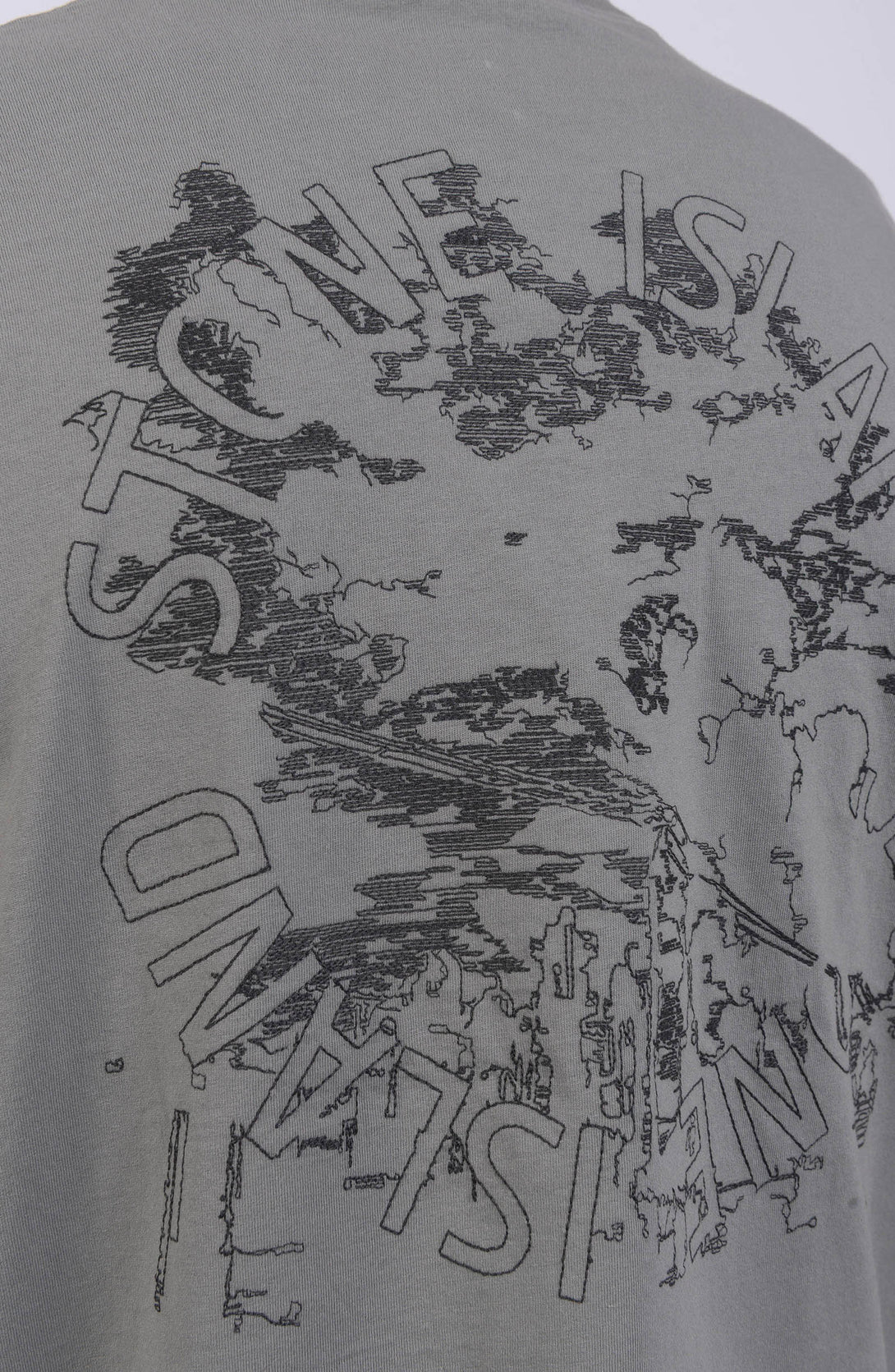 Ribbed neckline. Stone Island logo embroidery on chest. Embroidery of abstract city motif and Stone Island lettering on back. Regular fit.